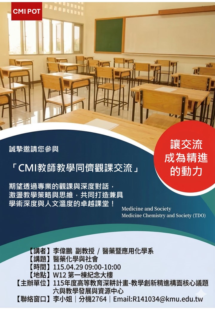 CMI教師教學同儕觀課交流會(中文授課) 課堂:醫藥化學與社會 |