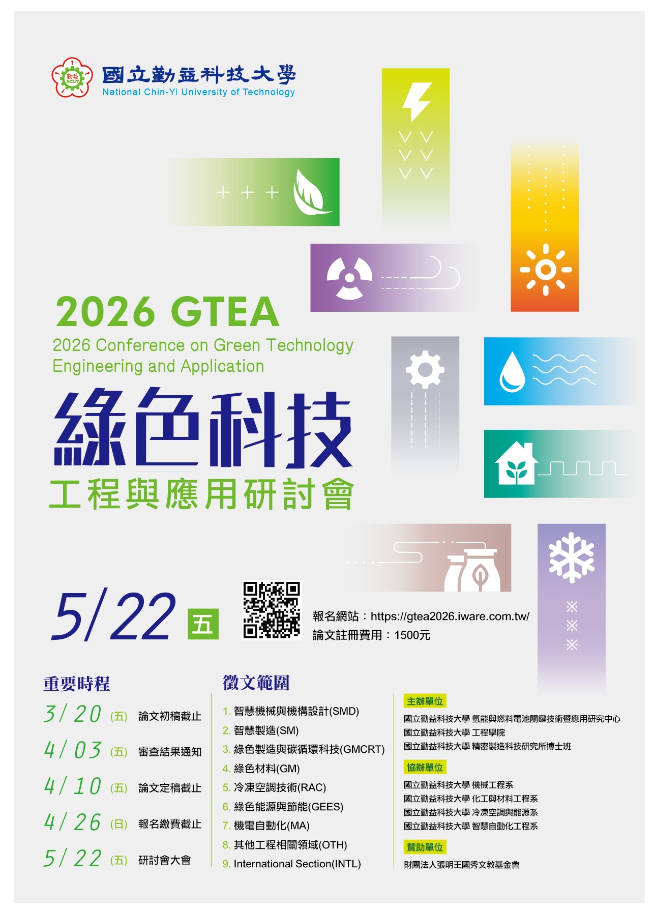 檢送本校工程學院辦理2026GTEA綠色科技工程與應用研討會海報乙份,請師生踴躍投稿,請查照。